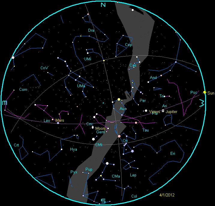 04/04/2012 – Ephemeris – Where are the bright planets this week?