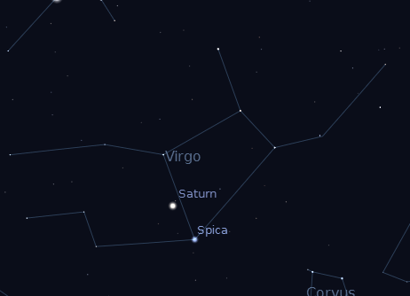 The bright blue star Spica can be found in the southeast as it gets dark now. It’s one of the fainter of the 21 first magnitude stars. It lies in the constellation of Virgo the virgin, and lies very close to the path of the sun, moon and planets in the sky. Saturn is just to the left of it this year. Spica is a binary star, whose brighter component is drawn into an ellipsoid by the tidal effect of the companion. They orbit each other in only 4 days. Spica is 260 light years away and over 3,000 times brighter than the sun. An Egyptian temple at Thebes was oriented to the setting point of Spica. The change in the setting point over time allowed the Greek astronomer Hipparchus to discover the precession of the equinoxes.