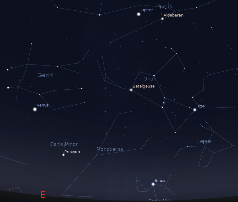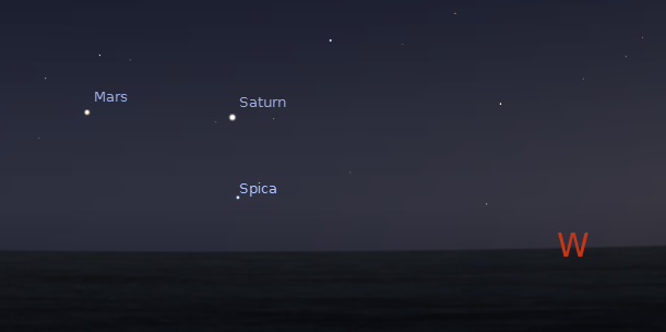 Let’s see what’s happening with the bright planets for this week. Mars Saturn and the star Spica make a bright but elongating triangle in the west southwest after sunset. Mars is on the upper left with Saturn on the upper right and Spica below. They are located in the constellation Virgo the virgin. Saturn will be setting in the west at 10:20 p.m, and Mars will set 3 minutes later. The morning sky features the two brightest planets: Jupiter, which will rise at 12:23 a.m. in the east northeast and Venus, which will rise at 3:16 also in the east northeast. Jupiter is near the head of Taurus the bull, while Venus is moving between Gemini and Cancer. Early morning is a good time to get a preview of winter stars.