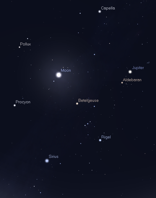 02/18/2013 – Ephemeris – The moon appears near Jupiter tonight