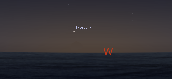 Mercury low on the western horizon at 7:15 p.m. on February 20, 2013. Created using Stellarium 0.12.0.
