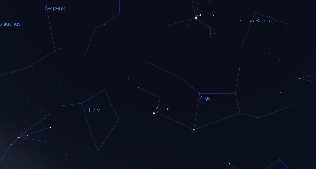The constellation Virgo which contains the bright star Spica and for this and the last two years the planet Saturn is in a sparse region of the sky as far as stars go. We are almost directly looking out the side of our Milky Way Galaxy. That milky band has been banished to the northern horizon. But while the stars may be few, we are also looking out past a gulf of 50 million light years to a great cluster of galaxies we call the Virgo Cluster. The galaxies here count into the thousands and overflow Virgo itself into adjacent constellations. I found that an 8 inch diameter telescope can easily pick up the brightest of them. In its heart is a giant elliptical galaxy M87 which has a black hole of 6.6 billion sun masses.