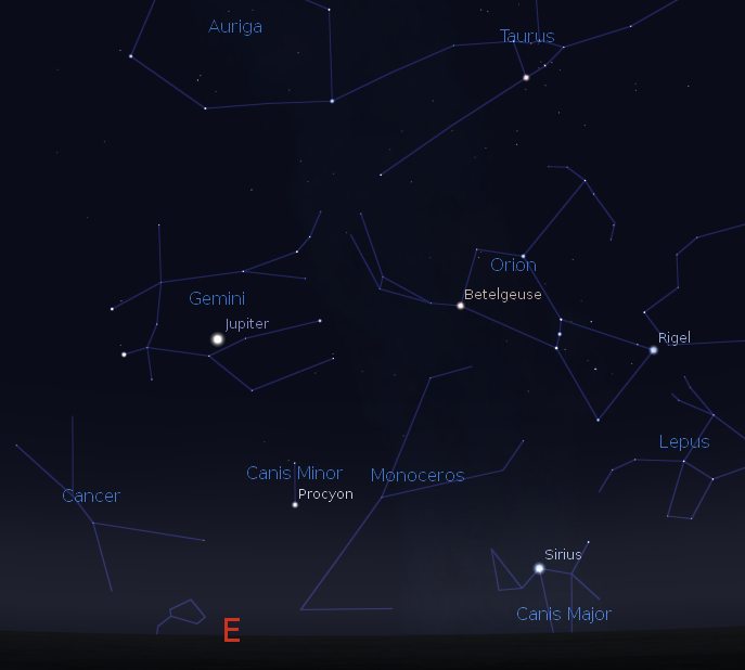 This is our weekly look at the planets. Venus is brilliant in the southwest after sunset. It will set at 7:08 p.m. Venus is noticeably closing with the sun. It will be lost in the glare of the sun in less than 2 weeks. Venus is a thin crescent, and we’re at the point where the crescent can be visible in binoculars. The giant planet Jupiter will rise at 5:56 p.m. in the east northeast. It’s cruising against the stars of Gemini now. It will pass due south at 1:35 a.m. Mars will rise at 1:02 a.m. in the east. Reddish Mars is to the upper right of the bright star Spica. It will be above the moon tomorrow morning. Saturn will rise at 4:36 a.m. in the east southeast. The ringed planet will best be seen in the evening next summer. There is a comet visible in binoculars in the morning sky. It’s Comet Lovejoy.