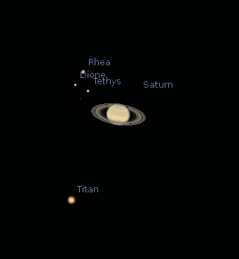 The planets below is how they’d look in a small telescope. They are magnified twice as much as Jupiter and its moons above.