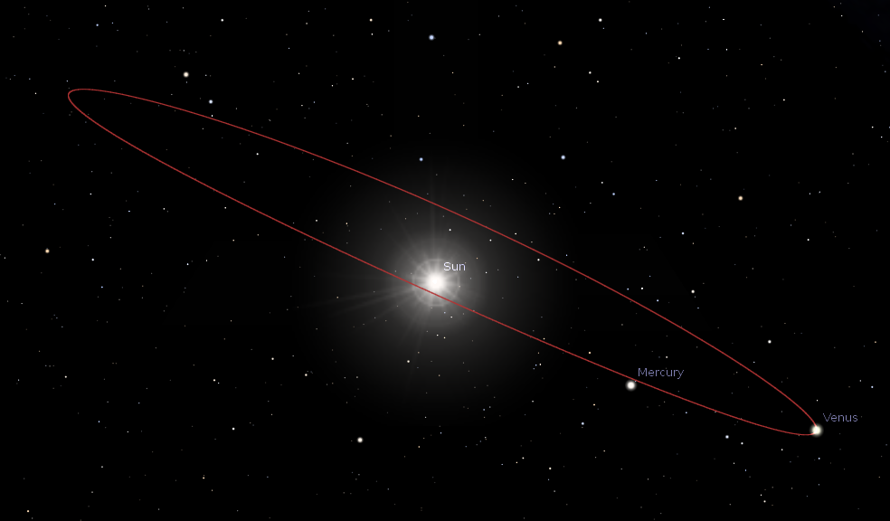 Venus at greatest western elongation and its orbit as seen from the earth on March 22, 2014. Created using Stellarium.