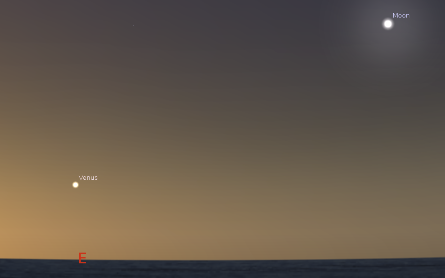 It’s Wednesday and once again time to locate the bright planets for this week. Mercury is showing up in the west shortly after sunset, It was at its farthest from the Sun 3 days ago. It will set at 11:09. Brilliant Jupiter will be in the western sky in Gemini as darkness falls tonight. It will set at 12:25 a.m. Reddish Mars is in Virgo in the south as darkness falls. It will pass due south at 9:52 p.m. It’s 72 million miles (115 million km) away now, and moving away, and will set at 3:41 a.m. Saturn will be low in the southeast as darkness falls. It’s in the faint constellation of Libra the scales this year. It will pass due south at 12:24 a.m. Brilliant Venus will rise in the east at 4:29 a.m. in morning twilight.