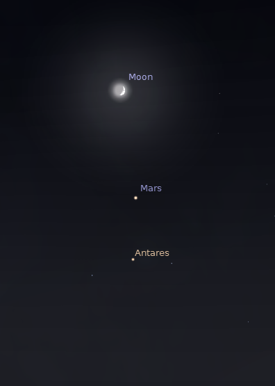 09/29/2014 – Ephemeris – The Moon, Mars and Antares will line up tonight