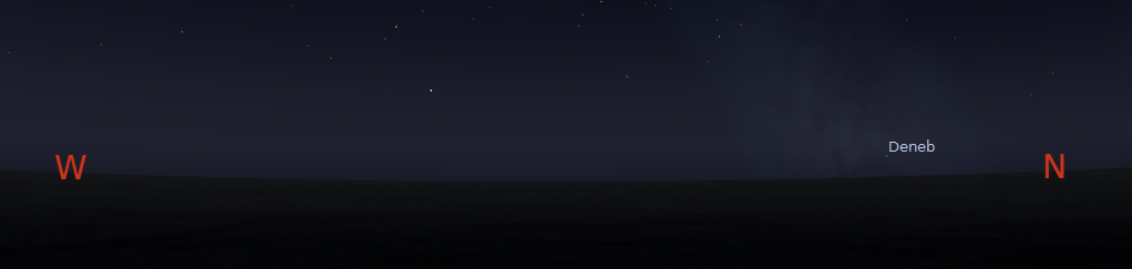 But will Deneb really set for Traverse City. Geometrically it will. However with a flat northern horizon looking northward over the bays to a clean Lake Michigan horizon, atmospheric refraction will bend the light from Deneb making it appear higher in the sky than it really is, so it won’t actually set. On the other side atmospheric extinction, the dimming of stars close to the horizon due to the filtering effect of looking through so much atmosphere would make Deneb impossible to see without a telescope. It might be an interesting challenge to spot.