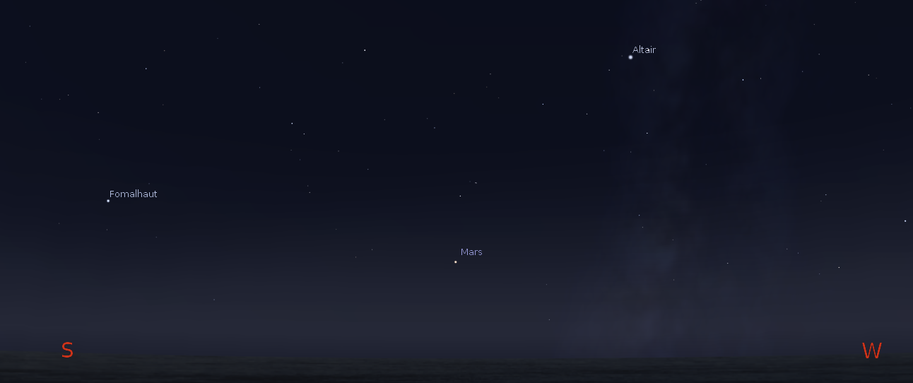 In reviewing which planets are visible tonight, it looks like we’re still down to two. Venus, Saturn and Mercury are hanging around near the direction of the Sun. It will be a little while before we see them again. However we can see Mars, which will be low in the southwest at 7 p.m. It will set at 8:29 p.m. Mars’ setting time will slowly advance only 6 minutes between now and the end of the year. Jupiter will rise at 10:28 p.m. in the east-northeast. The best telescopic views will have to wait a couple of hours after that. So if you’re more of an early bird rather than a night owl it might be better to view Jupiter with a telescope in the morning. Jupiter has those four bright moons that change position daily, and sometimes while you watch.
