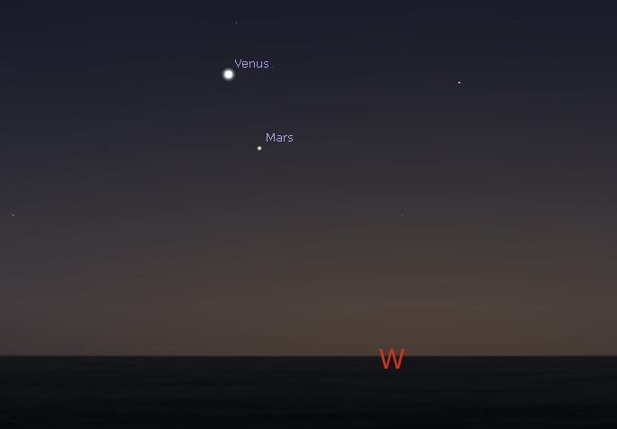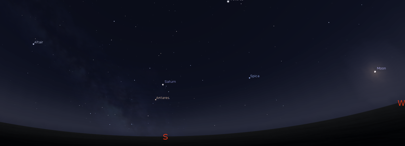 Lets take a look at the bright planets for this week. Brilliant Venus is in the west by 7:30 p.m. It will set at 9:13 p.m. It’s separating from Mars which appears below and right of it. The Red Planet will set tonight at 8:47 p.m. Jupiter will appear In the southeastern sky in the evening. It will be up just about all night, and will set at 6:16 a.m. It’s near the sickle-shaped head of Leo the lion, and it’s the brightest star-like object in the sky. In telescopes tonight the moon Io will be behind Jupiter and will pop into sunlight a bit away from the planet at 9:39 p.m. Tomorrow night the 5th the moon Europa will duck behind Jupiter at 8:48 p.m. After that only 3 of the moons will be visible, until 12:57 a.m. when Europa will appear on the other side.* Early risers will be able to spot Saturn which will rise in the east-southeast at 1:25 a.m. It’s in the south at 6 a.m.