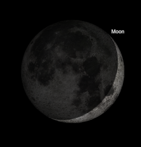 The Moon is again making its appearance in the evening sky as a thin crescent. The crescent appearance is because the moon is mostly between the Earth and the Sun. , so we are looking at just a sliver of it is sunlit, and most is unlit by the sun. But the Moon has the Earth in its sky, which is quite bright, and when the moon’s phase is thin, the Earth illuminates its night side with Earth light. We call it Earthshine, when the whole Moon appears faintly inside the crescent. It’s also known more poetically as the “Old moon in the new moon’s arms.” The planets Venus and Mercury also exhibit crescent phases because they can be positioned between the Earth and the Sun, as Mercury is now and Venus will be next month.