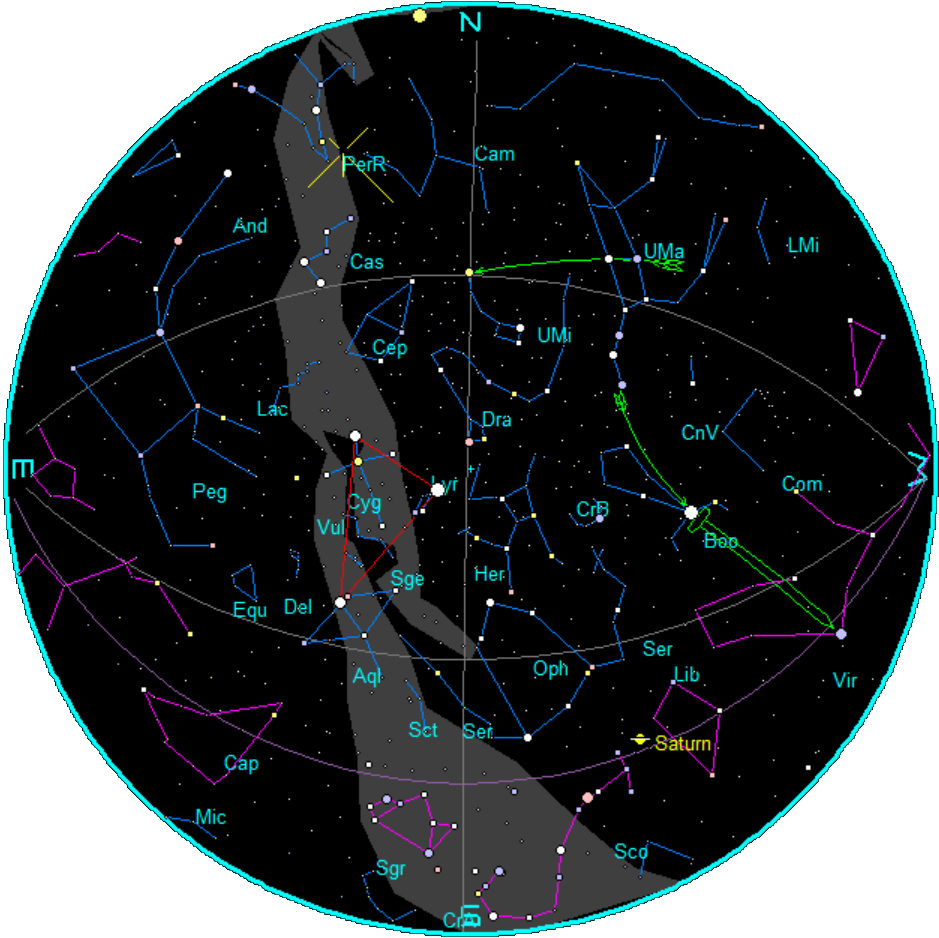 - The Summer Triangle is shown in red