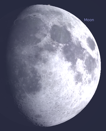 The Moon as it might be seen in binoculars at 8:30 p.m. September 23, 2015. Created using Stellarium.