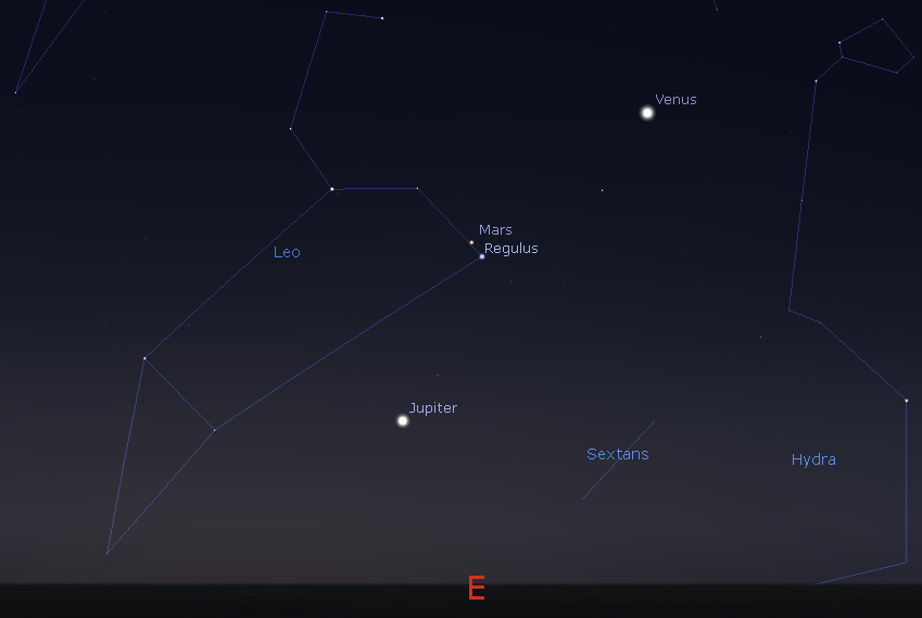 Lets look at the planets for this first day of autumn. Saturn is alone in the evening sky spotted by 9 p.m. low in the southwestern sky near the bright star Antares to its left. Antares has a reddish hue, while Saturn is brighter and yellowish. Both these colors are enhanced by being low to the horizon. Saturn will set at 10:13 p.m. The rest of the planet action has moved to the morning sky. Venus, the morning star, will rise at 4:09 a.m. a bit north of east. Much dimmer Mars will rise at 4:44 a.m. in the east-northeast. Jupiter is beginning to be visible in the morning sky and will rise at 5:37 in the east-northeast. Mercury, though in the evening sky, sets too soon after the Sun to be visible.