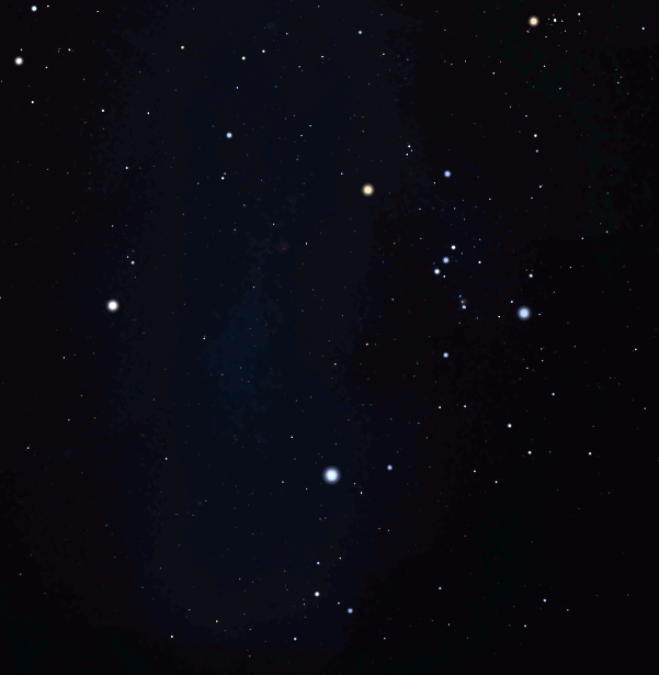 Orion and Canis Major Animation for 9 p.m. January 20, 2017. Click on image to enlarge. Created using Stellarium and GIMP.
