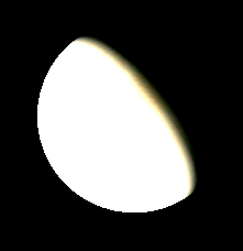 Venus as it might be seen through a telescope at 5 a.m. July 13, 2017. This is displayed at a larger scale/magnification than the Jupiter or Saturn images above. Created using Stellarium.