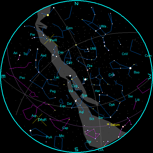 We are in the season for meteor showers. Today the South Delta Aquariid Meteor Shower will reach peak. This is a not very active shower where the meteors will seem to come from low in the southeastern sky after midnight. The radiant will rotate to the south by 5 a.m. The moon won’t bother it for the next few days. The number of meteors seen will be under 20 per hour. This long-lasting shower will still add a few meteors when the famous Perseid meteor shower begin to appear, which is around now. These meteors will seem to come from the northeastern part of the sky, and will reach peak for us in the evening hours of August 12th. On that night the Moon will brighten the sky after 11:30 p.m. So for the next two weeks both shower meteors can be seen.