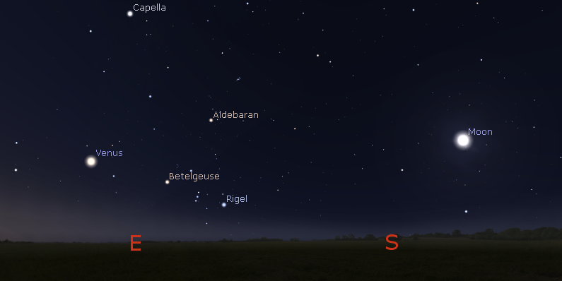 Venus in a telescope on the morning of August 10, 2017. It is greatly enlarged here to show its phase. Created using Stellarium.