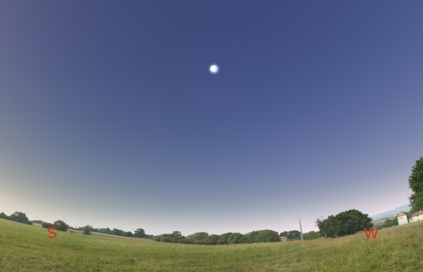 Position of the Moon in the sky near the start of the occultation, 8:35 a.m. September 12, 2017. Created using Stellarium.