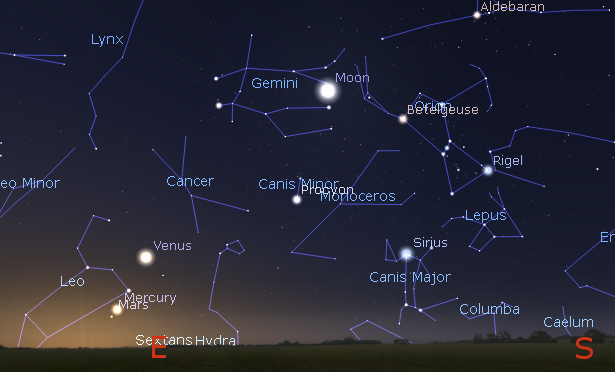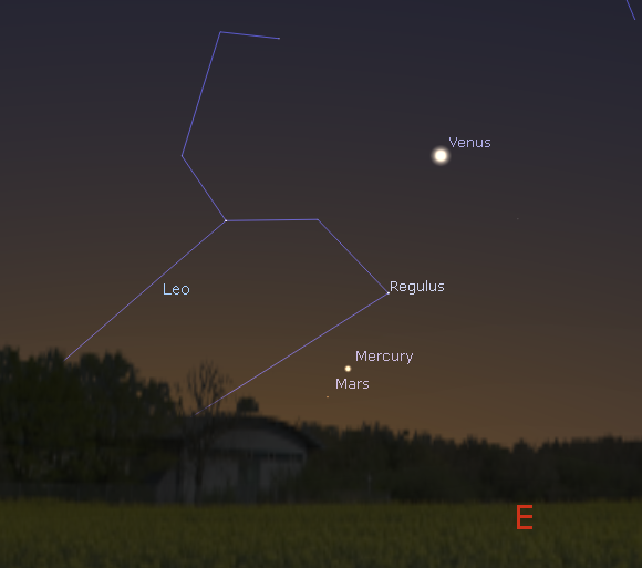 Planets in the morning sky at 6:30 a.m. September 14, 2017. Created using Stellarium. Click on the image to enlarge.