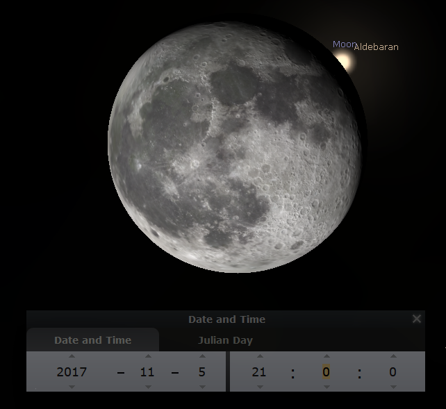 11/05/2017 – Ephemeris Extra – There will be an Occultation of Aldebaran tonight*