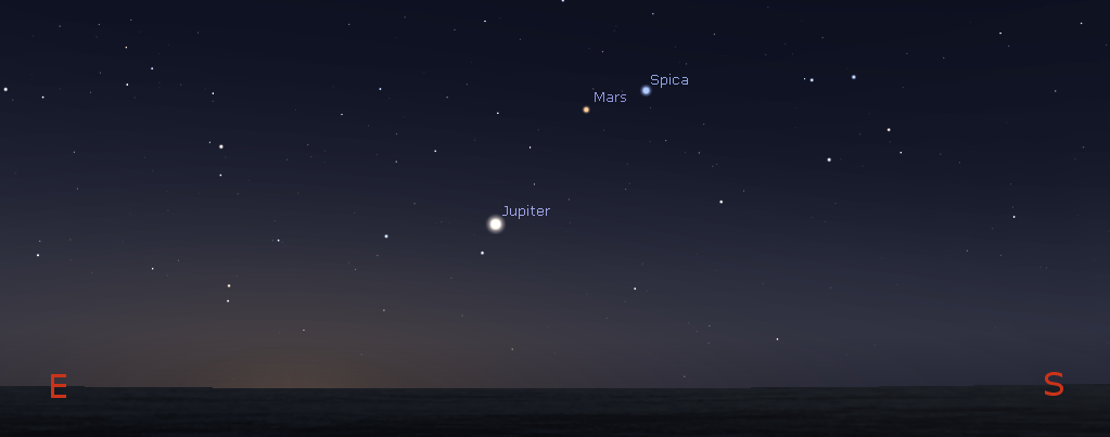 Mars and Jupiter in the morning at 7 a.m. December 7, 2017. Click on the image to enlarge. Created using Stellarium.