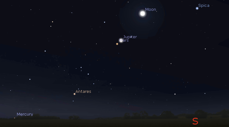 Morning planets with an animation of the Moon’s motion on the morning of the 10th & 11th. Created using Stellarium and GIMP. I’ll be covering the Moon’s apparent proximity to the planets tomorrow. Click on image to enlarge.