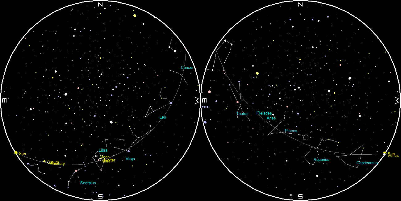 01/10/2018 – Ephemeris – One lone, but invisible, bright planet in the evening, the rest in the morning