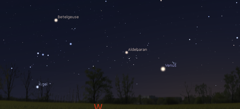 It’s Wednesday again and time to look for the bright planets. One bright planet is in the evening sky, the brightest, Venus. It will be visible low in the western twilight from about 9:10 p.m. until it sets at 10:58. Venus is blindingly bright in binoculars or a small telescope. Jupiter will rise this evening at 9:42 p.m. That doesn’t make it an evening planet. It has to rise before sunset to be an evening planet. Give it a couple of weeks. Saturn will rise at 1:37 a.m., while Mars will rise at 2:33 a.m.