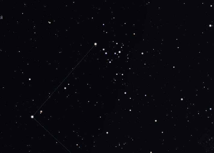 High in the southeast at 10 p.m. is a tiny and faint constellation of Coma Berenices, or Berenice’s hair. In it are lots of faint stars arrayed to look like several strands of hair. The whole group will fit in the field of a pair of binoculars, which will also show many more stars. The hank of hair was supposed to belong to Berenice, Queen of Egypt, of the 3rd century BCE. Coma Berenices is the second closest star cluster to us at only 250 light years away, after the Hyades, the face of Taurus the bull now setting in the west. It’s in an odd spot for a galactic star cluster, that’s supposed to lie in the plane of the Milky Way. It actually lies at the galactic pole. That’s an illusion because it’s so close to us. It’s still really in the plane of the Milky Way.