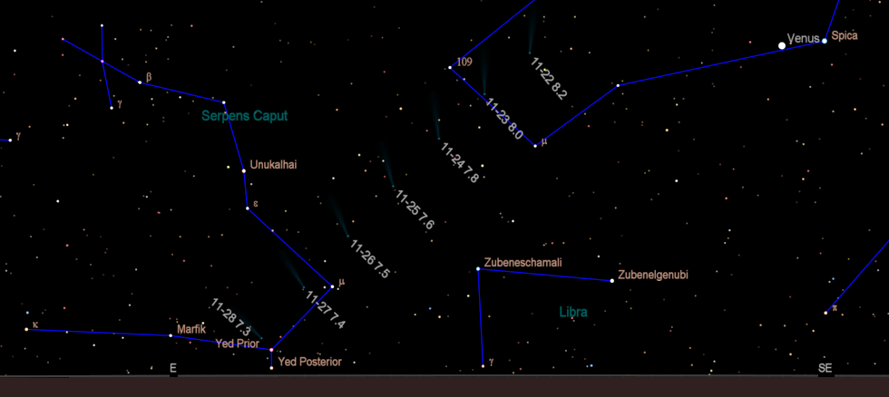 11/21/2018 – Ephemeris – The bright planets and two comets for this week