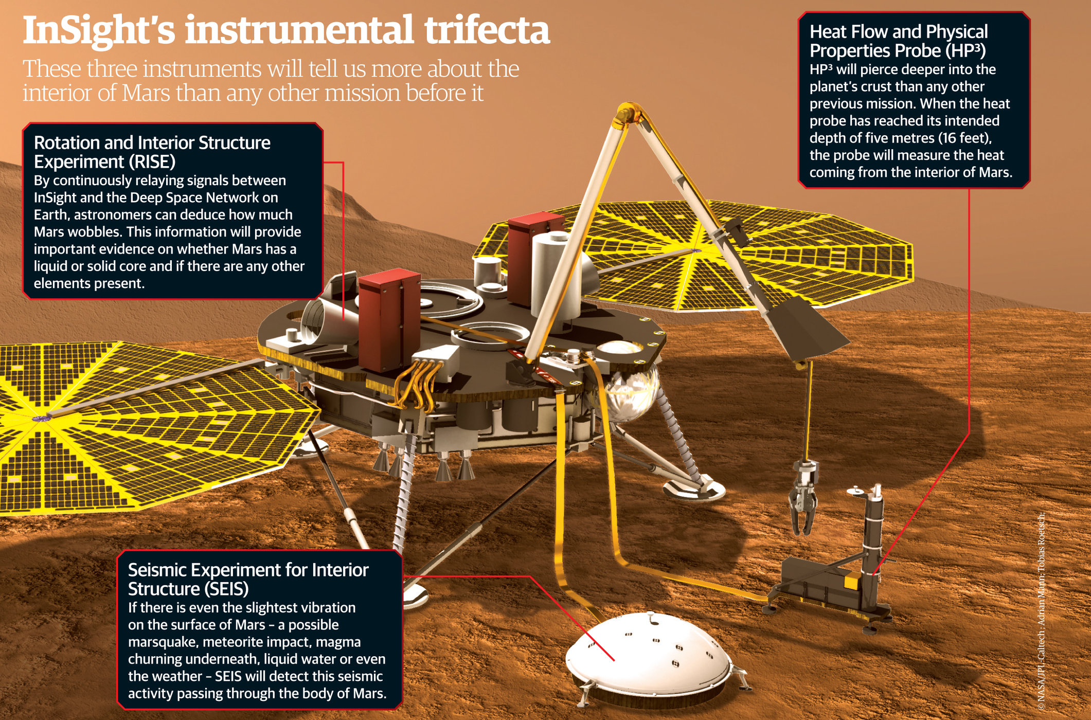 To see Emily’s post with a lot more information, click on this URL: http://www.planetary.org/blogs/emily-lakdawalla/2018/mars-insight-landing-preview.html. The post has a link to NASA’s 68 page pdf Mars InSight Landing Press Kit, which covers all aspects of entry, descent and landing, the Mars Insight components, and science instruments, and what they expect to learn about Mars’ interior.