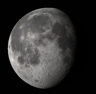 The waning gibbous Moon as it should appear tomorrow morning with binoculars. Created using Stellarium.
