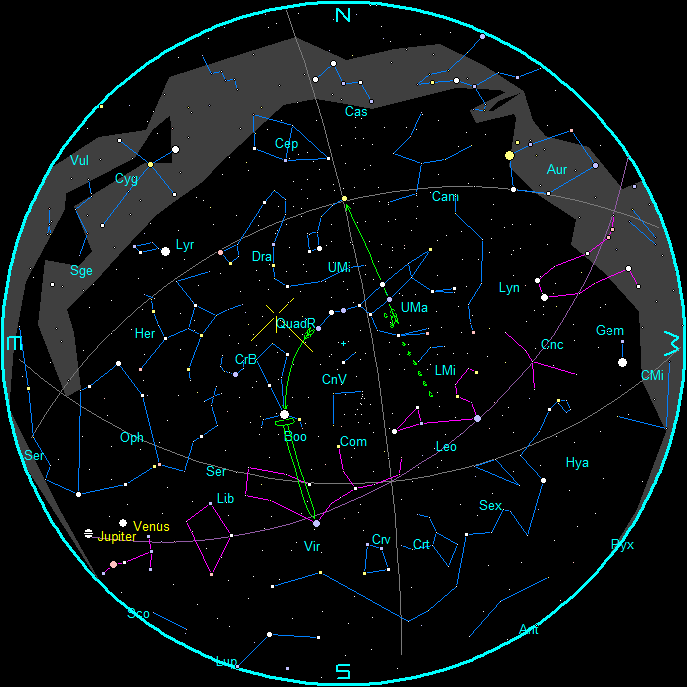 01/03/2019 – Ephemeris – The Quadrantid meteor shower will reach its peak this evening