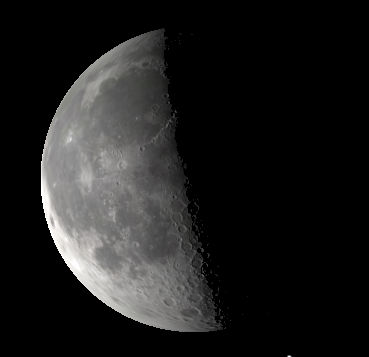 The moon as it might appear in binoculars tomorrow morning, March 28, 2019. Created using Stellarium.