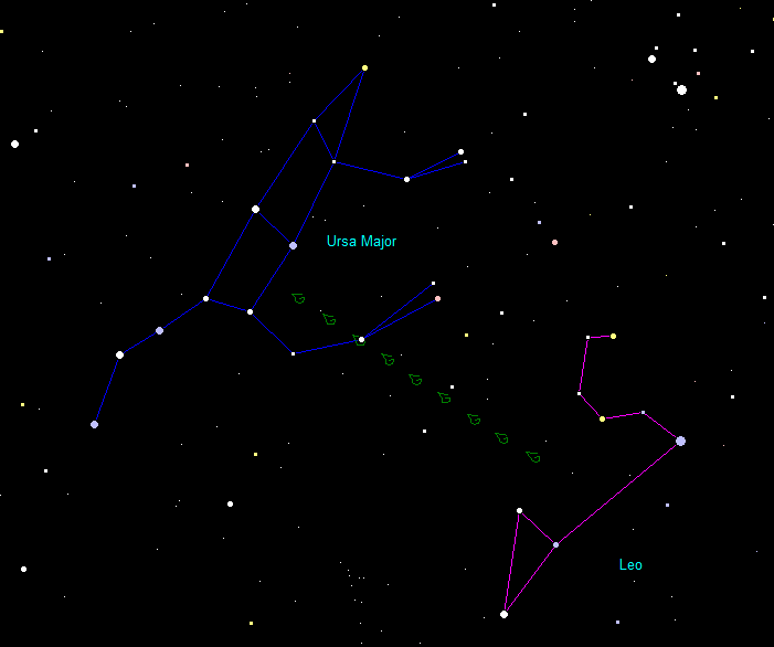 Tonight as twilight fades around 8 p.m. the constellation of Leo the lion can be seen rising in the east. The head and mane of a male lion is seen as a backward question mark. This pattern of stars is also called the sickle. The bright star that is the dot at the bottom is Regulus, the “Little King Star”. To the lower left is a triangle of stars that is the lion’s hind end with the star Denebola at the far end. It is said that the reason the figure of a lion came to be seen in the stars here is because lions came from the desert, driven by the heat, to drink from the river Nile the time of the year that the sun was in this part of the sky. Leo can also be found by first locating the Big Dipper high in the northeast, a hole in its bowl drips on Leo.
