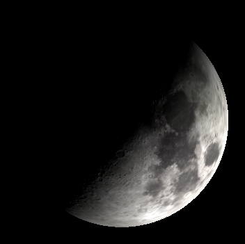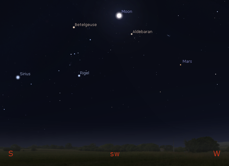 The Moon as it might appear in binoculars or a small telescope tonight at 9 p.m. March 13, 2019. Created using Stellarium.