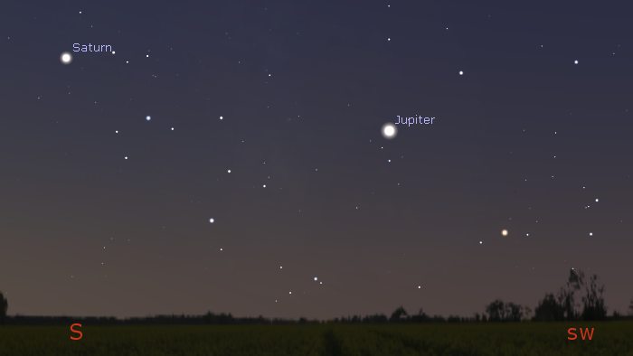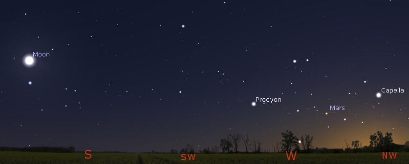 Mars and the Moon tonight at 10 p.m. May 15, 2019. Click on the image to enlarge. Created using Stellarium.
