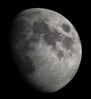 The gibbous Moon as it might appear in binoculars or a small telescope tonight at 10:30 p.m. June 12, 2019. Created using Stellarium.