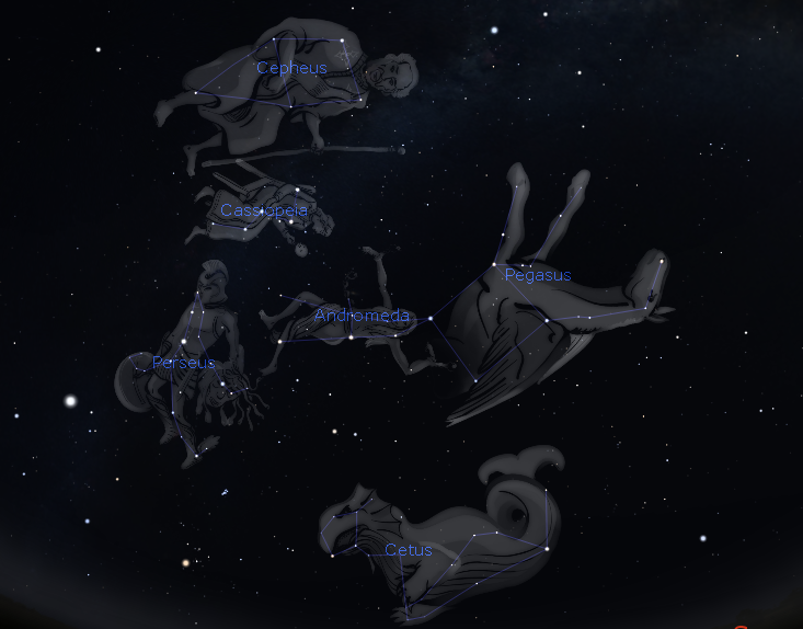 There you have it a story connecting the autumn constellations of Cepheus, Cassiopeia, Andromeda, Perseus, Pegasus and Cetus.