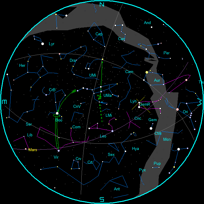 - Follow the arc of the handle of the Big Dipper to the star Arcturus, then