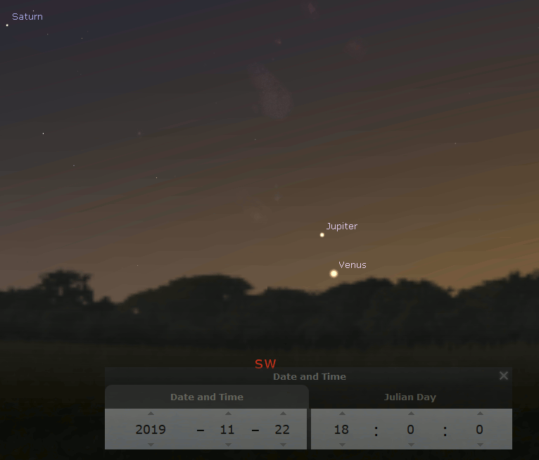 11/22/2019 – Ephemeris – Jupiter and Venus will appear to cross paths this weekend