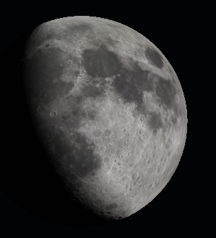 The gibbous Moon as it might appear in binoculars at 8 p.m. March 4, 2020. Created using Stellarium.