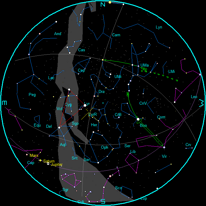 - The Summer Triangle appears in red.