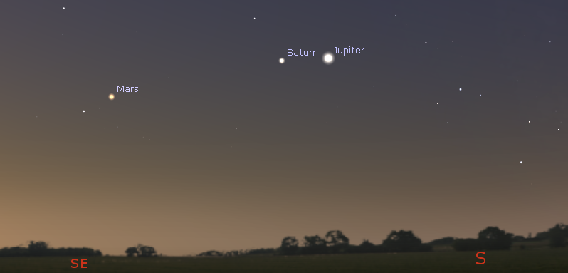 The Morning planets and the southern summer stars at 6 a.m. tomorrow April 23, 2020. Click on the image to enlarge. Created using Stellarium.