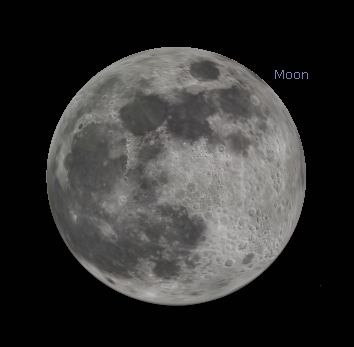 The nearly full Moon as it might be seen in binoculars at 10 p.m. tonight May 6, 2020. Created using Stellarium.