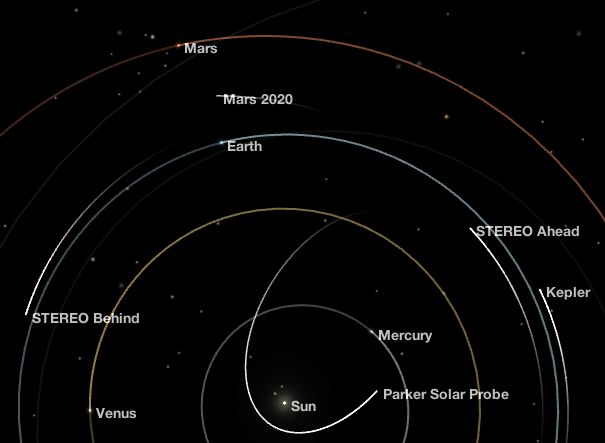 Inner solar system on October 6, 2020 showing Mars at it’s closest to the Earth. Note the motion of the planets and space probes are counterclockwise. Mars is moving away from its closest point to the Sun at about the 2 o’clock point in its orbit. Note that at this time Mars, the Earth and Sun are not yet in line, so Mars isn’t directly opposite the Sun from the Earth, called opposition. That will occur on the 13th. The Mars 2020 Rover “Percy” has a bit more than 4 months to go to reach Mars. Credit: NASA Eyes App https://eyes.nasa.gov/