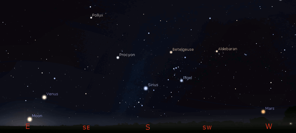 Morning planet animation for 6:45 am tomorrow October 15, 2020. Click on the image to enlarge. Created using Stellarium.