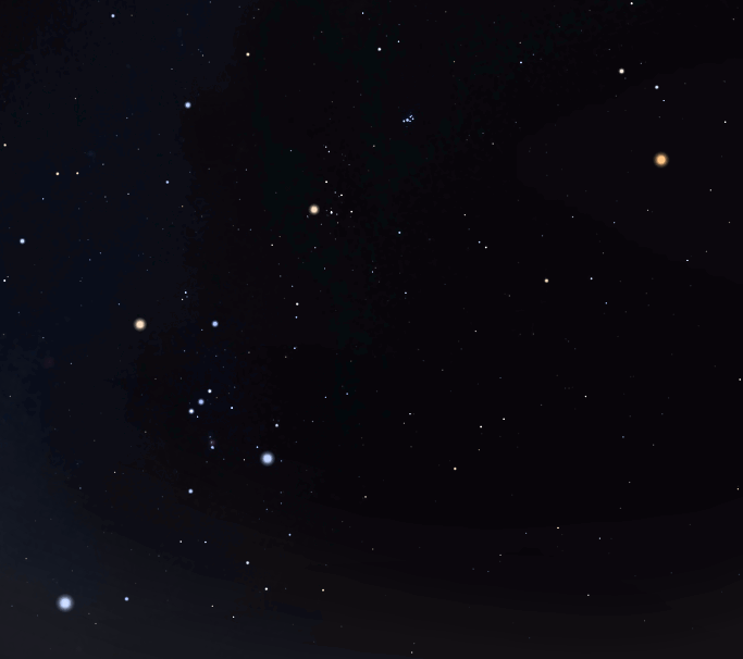 Mars finder animation for 8 pm tonight, January 13, 2021 (about 2 1/2 hours after sunset. Looking southward. Created using Stellarium and GIMP.