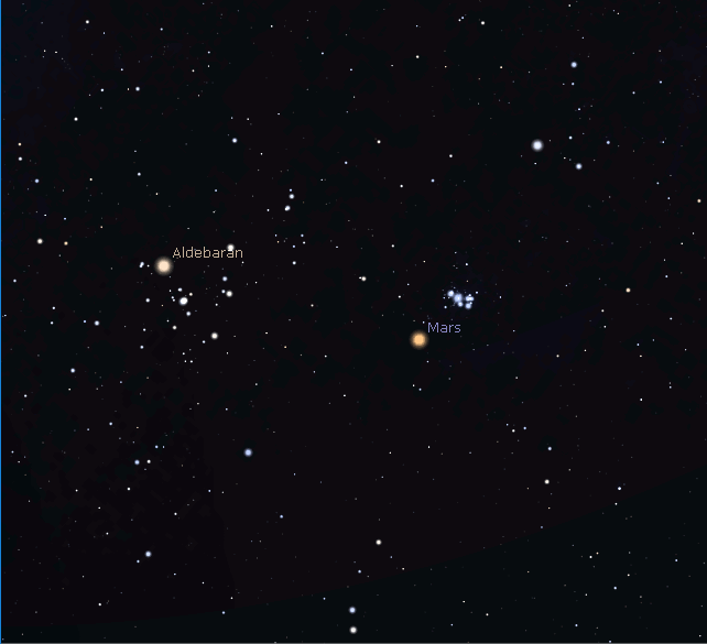 3 We 6:32 pm Mars-Pleiades: 2.6° S